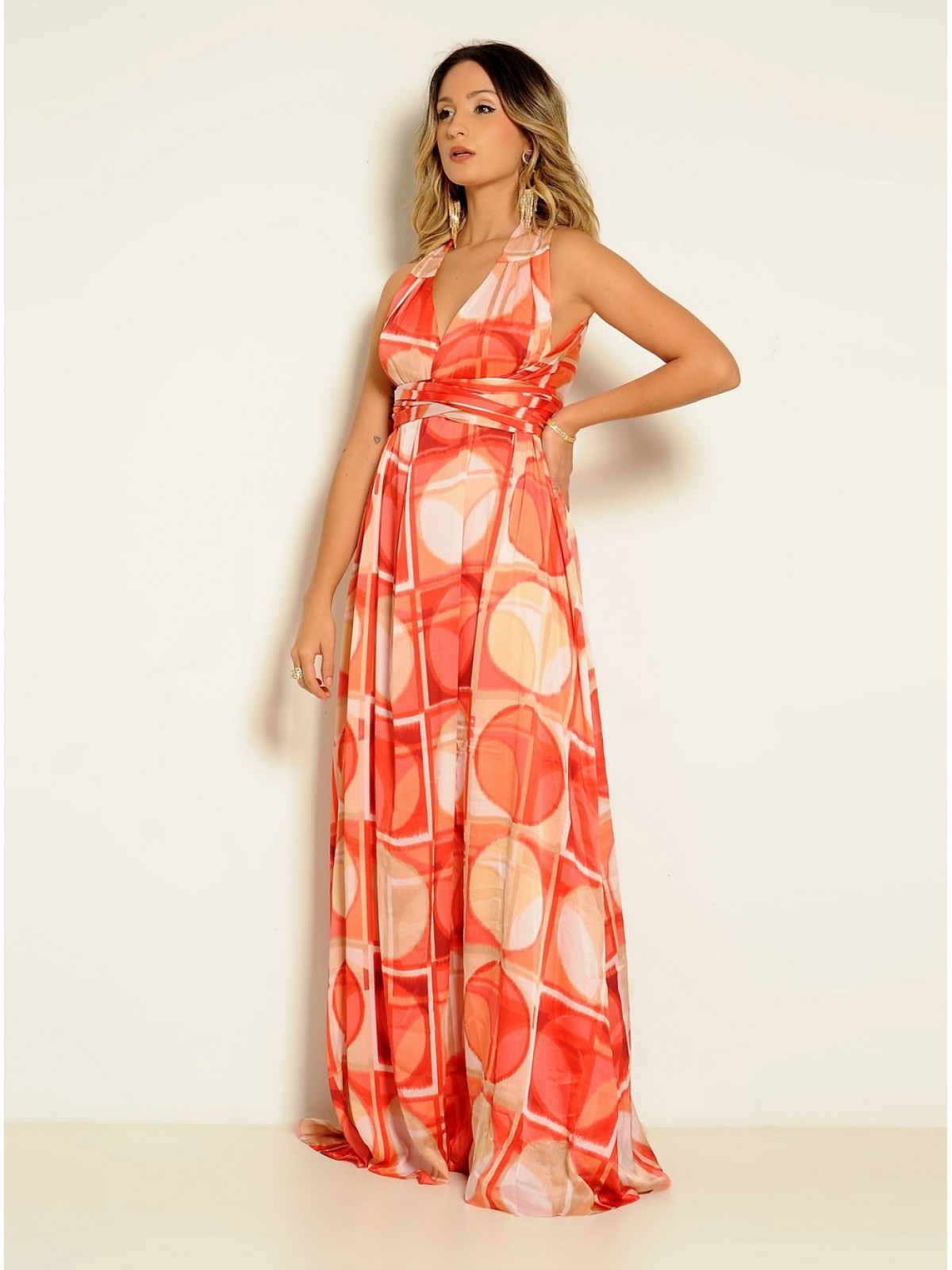 VESTIDO LONGO ESTAMPA CORAL CÓDIGO 020