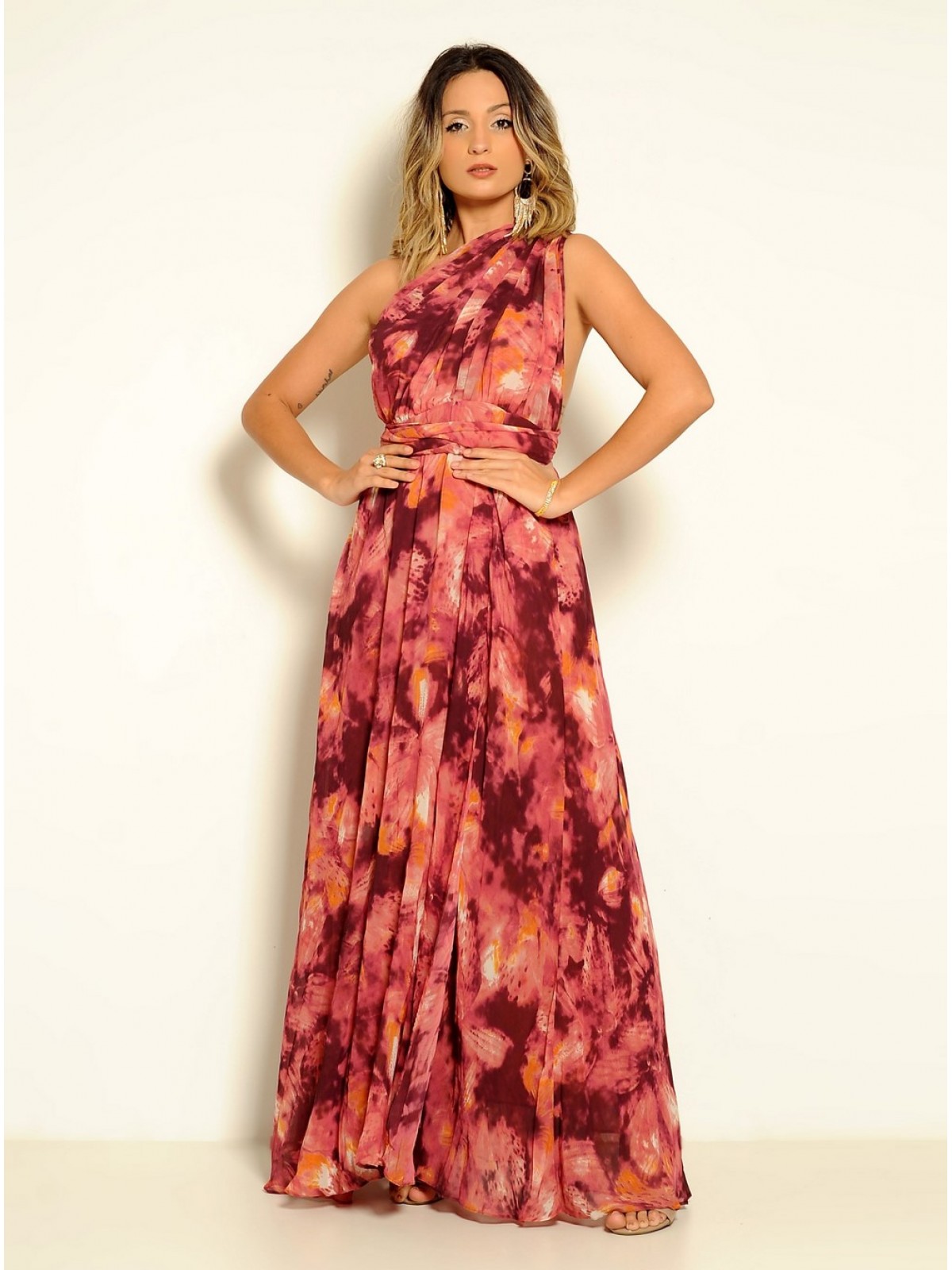 VESTIDO LONGO MULTIFORMA CORAL FLORAL CÓDIGO 020